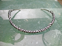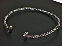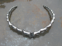 All my jewelry is fabricated in stainless steel.My curious jeweler friends inevitably ask me "why on earth would you want to work in such an intractable medium"? My answer is invariabbly "because I can"...Stainless steel is generally hypo-allergenic,exceedingly durable, and provides interesting surface decoration possibilities.